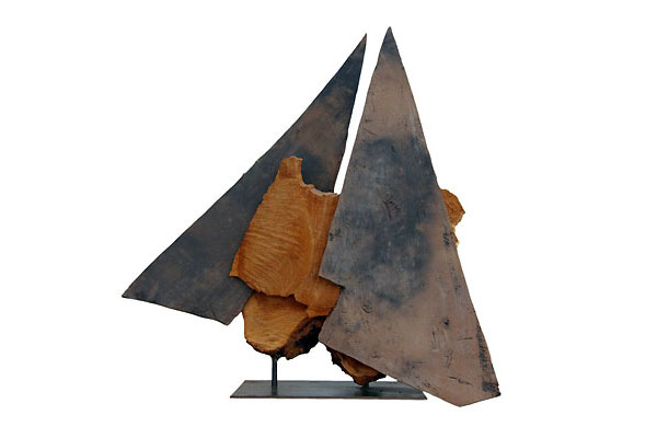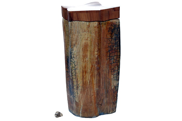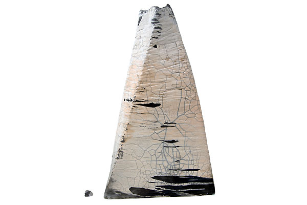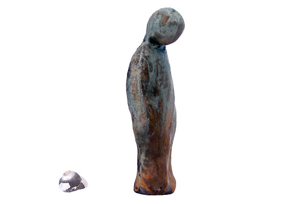 - »Um die Welt«, Raku/Holz, Höhe 75cm