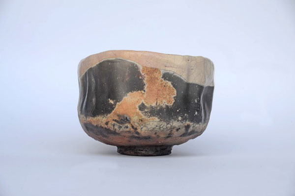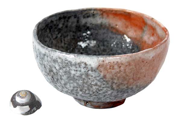 Macha-Dose, Raku/Gold, Höhe 10cm